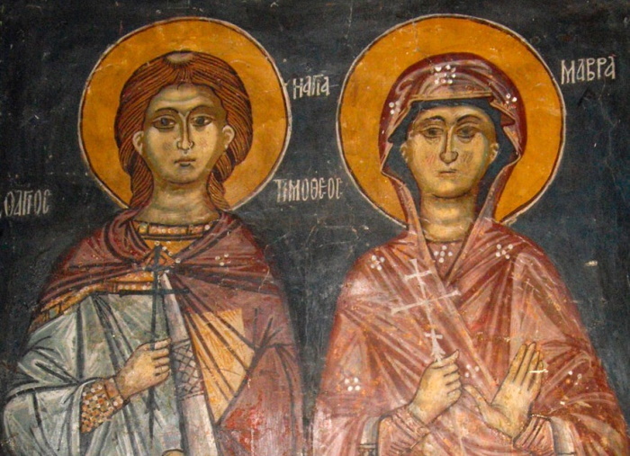 Святой Тимофей был сыном священника и состоял чтецом в церковном клире, а ещё переписчиком и хранителем богослужебных книг. Во время гонений на христиан при императоре Диоклетиане на святого донесли. Тимофея привели к правителю, который потребовал отдать все имеющиеся священные книги, но святой отказался, за что его подвергли страшным мучениям. Узнав, что у Тимофея есть молодая супруга Мавра, её тоже вызвали к правителю. Мавра отказалась убедить мужа отречься от веры, и признала себя христианкой. Женщину тоже подвергли мучениям, а позже супружескую пару распяли на кресте. В течение девяти дней они весели на крестах лицом друг к другу. На десятый день святые вручили Богу свои души.