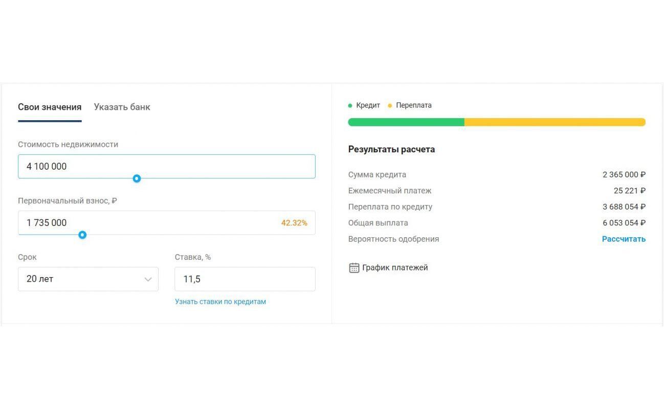 1 500 000 – продажа квартиры, проценты и сбережения 85 000, подкинут родственники (обещали). Итого: 1 735 000 рублей, а квартира стоит 4 100 000 рублей. Встал вопрос: сможет ли он позволить себе погасить оставшуюся сумму за счёт ипотеки.