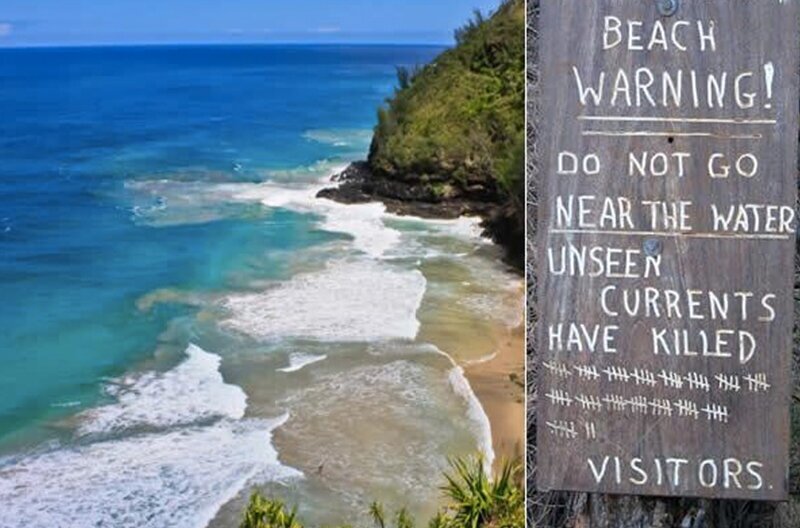 Ханакапиаи – уединённое местечко, которое находится на одном из островов Гавайского архипелага. Все бы хорошо и места тут райские, однако повсюду стоят надписи, предупреждающие об опасности купания. Течение здесь настолько сильное, что выплыть могут лишь опытные пловцы, да и то не все. Спасательной станции тут нет и, случись что, полагаться придется только на самого себя и удачу.
