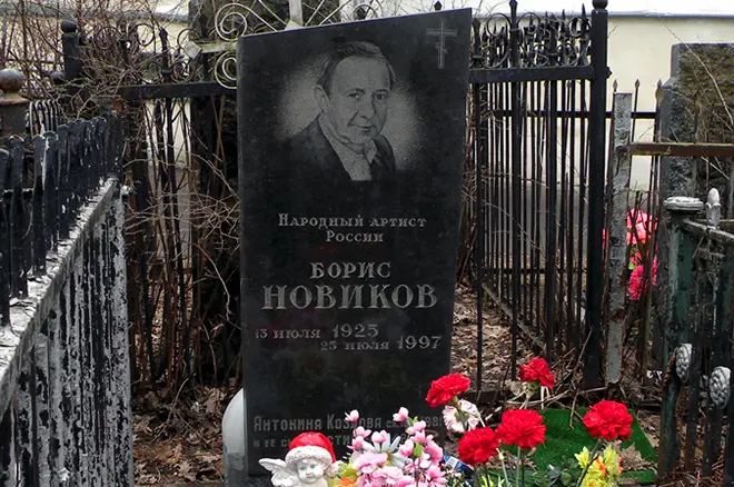 Ушёл из жизни Борис Кузьмич Новиков 25 июля 1997-м году, народному артисту РФ всего было 72 года. В СМИ его кончина была не интересна... Провожали короля эпизода в последней путь его жена и трое дальних родственников, и неравнодушный водитель похоронной церемонии, который согласился помочь донести гроб... Похоронили Бориса Кузьмича на Николо-Архангельском кладбище.