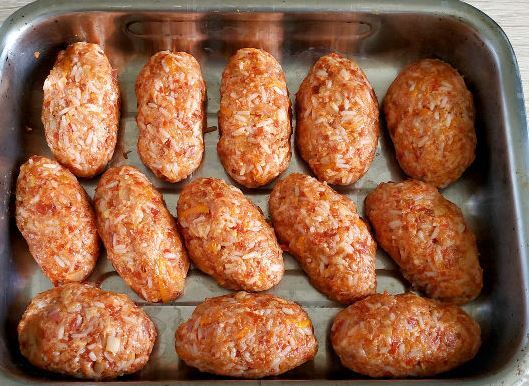 Включите духовку на 200 градусов для предварительного разогрева. Влажными руками сформируйте из фарша котлетки овальной или круглой формы и выложите их в глубокую форму для запекания.