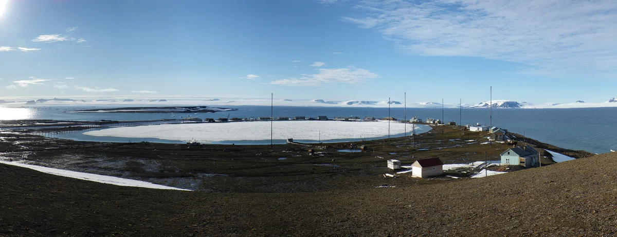 Полярная станция "Бухта Тихая", открытая 30 августа 1929 г. на острове Гукера, стала 1-м постоянным поселением на Земле Франца-Иосифа. В 1929 г. к архипелагу практически одновременно направлялись советская и норвежская экспедиции. Последней помешала тяжелая ледовая обстановка. Станция активно работала до 1957 г., но была закрыта в связи с созданием новой на острове Хейса: он оказался более благоприятен для метео исследований. С той поры в Бухте Тихой остался посёлок: жилые дома, мастерские, лаборатории, целая улица из собачьих будок. Даже миски сохранились.