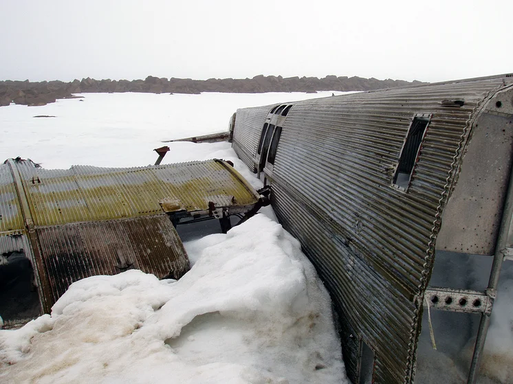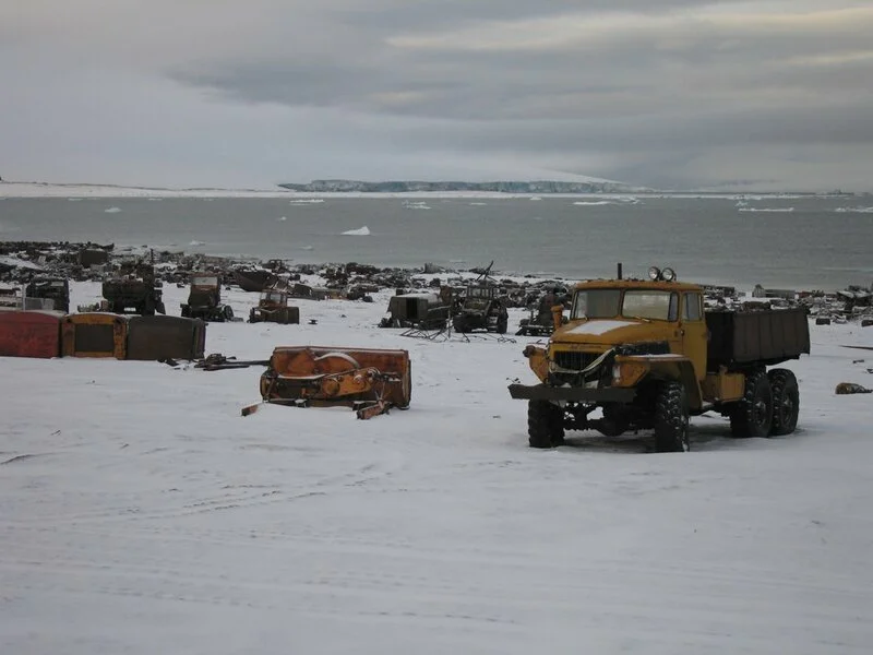На острове Рудольфа - заброшенная советская полярная станция не очень понятно, что можно чистить, что нельзя - что мусор, а что уже исторический объект.