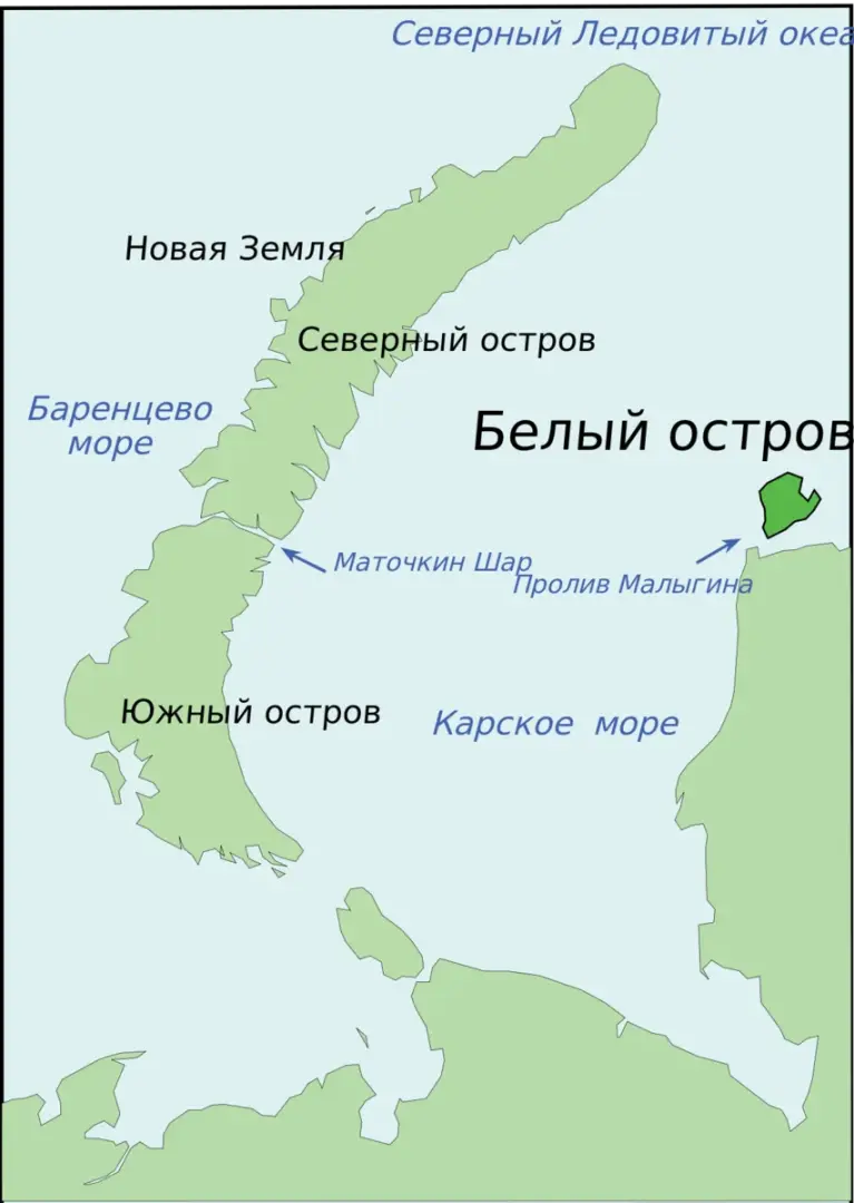 На самой 1-й карте красный кружок к югу от Новой Земли.