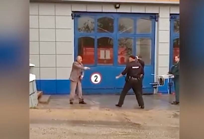 По видео видно только доведенного до отчаинья старика, МЧСника который подначивает ".. давай давай" и беспредельщики мусора, без капли уважения как бандиты. Зачем дубасить дубинками после того как облили газом... Лишь бы отдубасить и не кто не попытался поговорить, выяснить что случилось, успокоить старика, нож не стреляет - времени придостаточно.