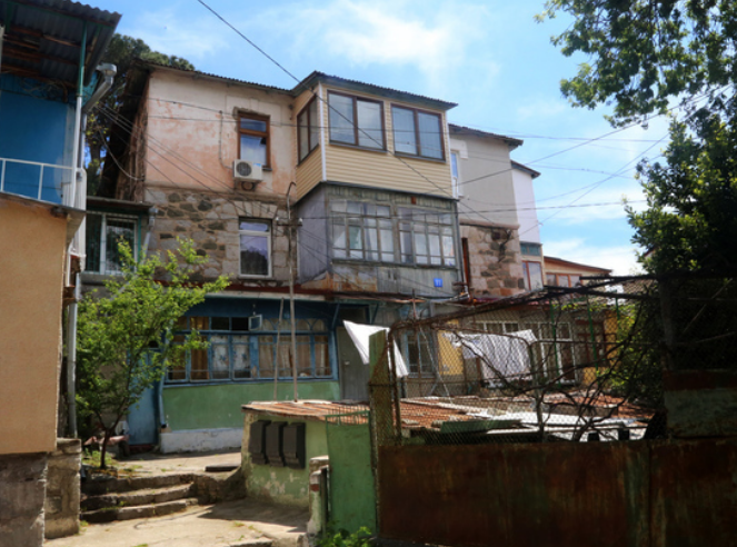 Самым дешевым из оставшихся вариантов размещения, который удалось обнаружить, оказался гостевой дом в Судаке. Объект расположен в тихом районе города в 10 минутах ходьбы от центра и 25 минутах от городского пляжа. Номер «эконом» на четверых в мансарде обойдется в 19,5 тысячи рублей за 2 недели. В комнате площадью 21 метр помимо кроватей, тумбочки, шкафа, стола и стульев горбачевских времен имеются свой умывальник, вентилятор и телевизор старой модели. Санузел и кухня на несколько номеров находятся на этаже.