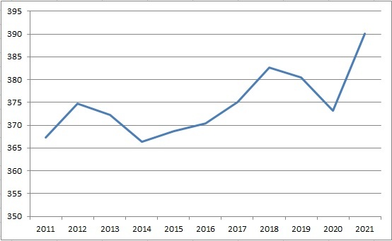 В апреле 2019 года потребление э/э составило 86,7 млрд кВт/ч, в апреле 2021 года в целом по России - 88,5 млрд кВт/ч (первый квартал 2021 года тоже был рекордным).