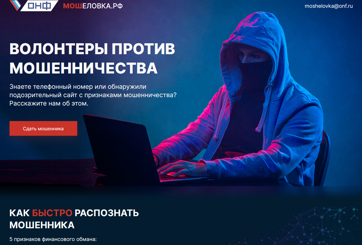 21 мая на Российском интернет-форуме (РИФ-2021) Народный фронт презентует платформу «Мошеловка» или волонтеры против мошенничества. На портале гражданам предлагается «сдать мошеннника»: сообщить, воспользовавшись специальной формой, о противоправных действиях тех, кто охотится за деньгами на счетах граждан.