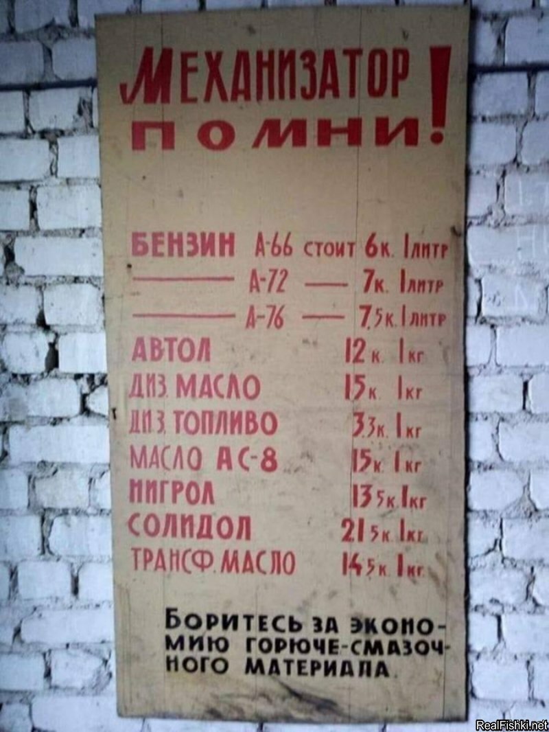 Начиная с 60-х на заправках можно было купить топливо четырех типов: А-66, А-72, А-76 и АИ-93.