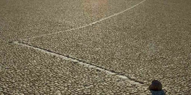 Первые свидетельства о том, что в каком-то богом забытом пересохшем озере живут ходячие камни, появились в 1900-х годах. Надо полагать, заметившие их старатели как минимум удивились. Но когда слухи дошли до Геологического общества Америки, учёные мужи сказали, что это всё просто ветер, и забыли о феномене. Неплохой, видимо, был ветерок, раз ворочал булыжники до 70 килограммов весом.