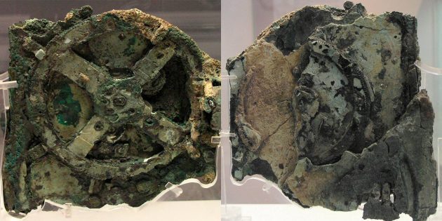 Но самой интересной находкой стал знаменитый антикитерский механизм. Он представлял собой деревянный корпус с тремя десятками бронзовых шестерней и циферблатами на передней части. На одной из панелей было что-то написано — возможно, руководство для пользователя.