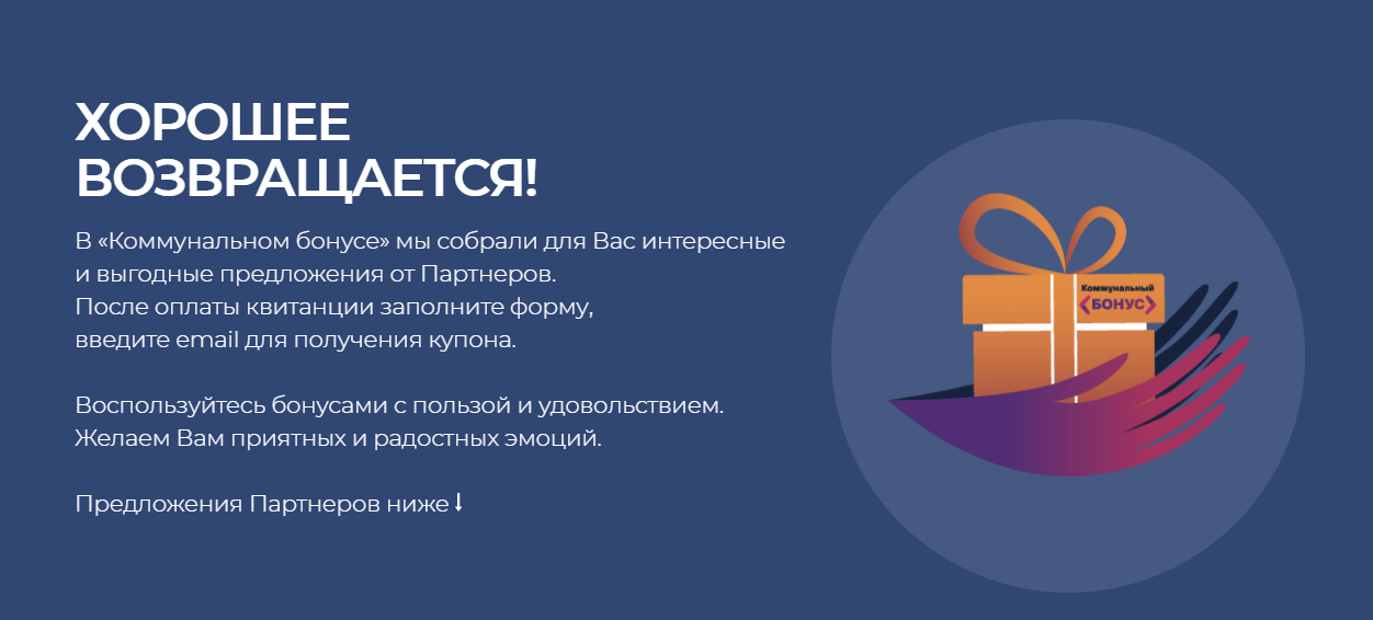 После оплаты счетов потребитель автоматически попадает на страницу программы, где может выбрать, на что потратить начисленные бонусы. На сайте представлены предложения и скидки от партнёров акции: образовательных проектов, интернет-магазинов, онлайн-кинотеатров и ресторанов.