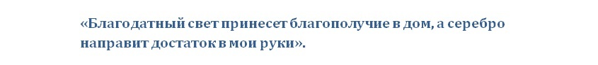 Понадобится родниковая вода и серебряные монетки. Воду налить в чашку, туда же бросить монеты. Поставить чашку на окно так, чтобы от монеток отражался лунный свет. Левую руку подставьте под лунный свет и скажите слова
