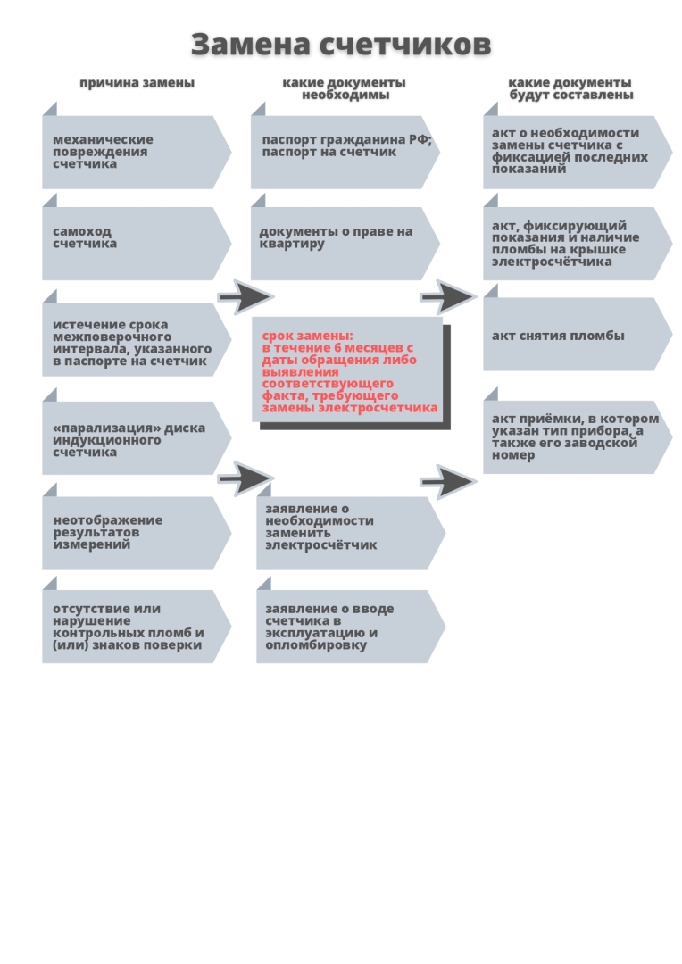 Таким образом, обращаться с заявкой о замене счетчика необходимо к гарантирующему поставщику, который в течение 6 месяцев с момента поступления заявки обязан выполнить необходимую потребителю процедуру. Однако, как показывает практика, на такой срок процедура замены счетчика не затягивается, всё происходит гораздо быстрее.