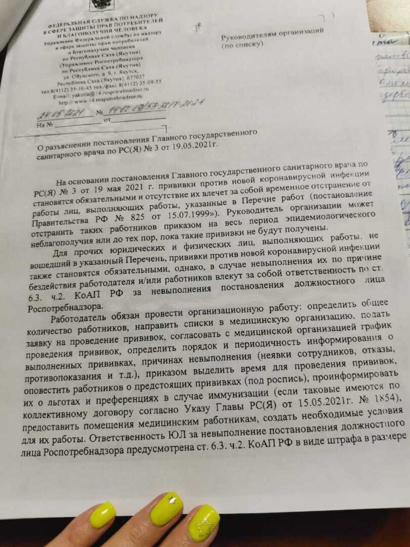 Если уже разработали систему штрафов и увольнений и слюни потекли - значит уже запланировали себе покупки яхточек или виллочек в Каннах. Не те это существа, чтобы в чем-то себе отказывать. Будут ширять якутов отравой. Мадам просто озвучила: "Жизнь или кошелёк!"
