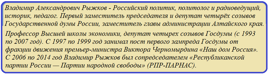Практически то же мнение высказал и сопредседатель незарегистрированной Партии народной свободы (ПАРНАС) Владимир Рыжков, заметивший: