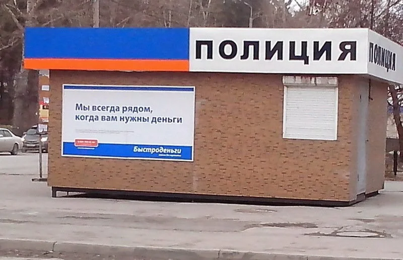 Наверное, контора по быстрым займам первая подсуетилась и повесила банер, другое дело, если полиция решила припугнуть горожан таким нестандартным способом.