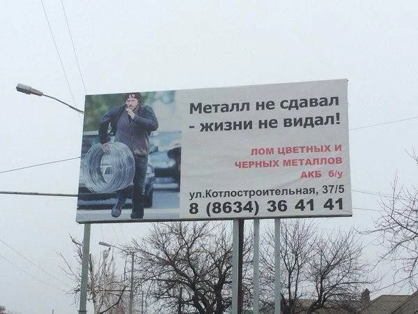 Обратите внимание, как искусно отфотошопили мужика, который бежит сдавать металл.