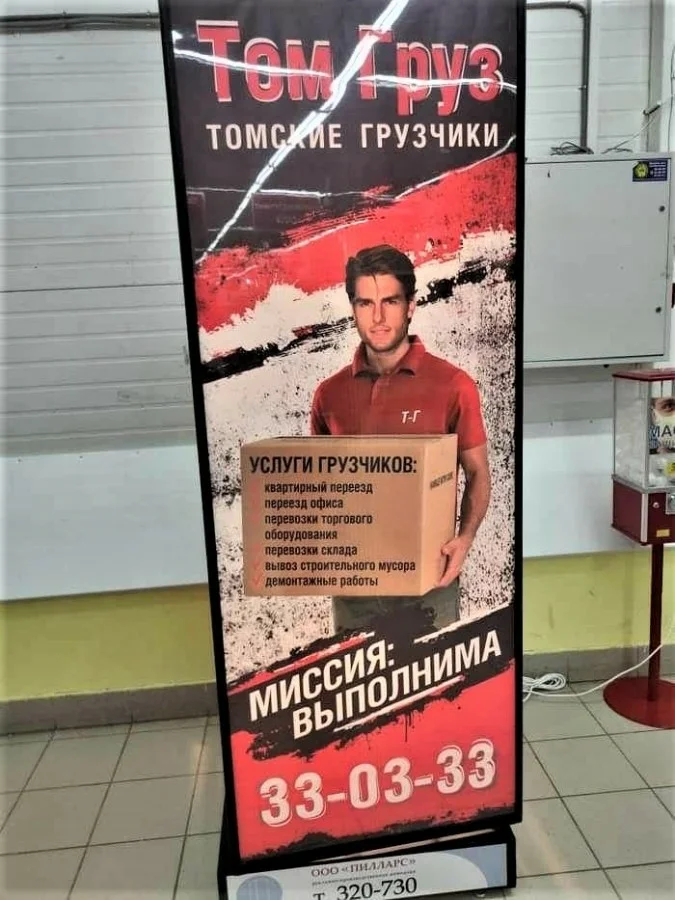 Если Том Круз узнает, что его образ так бесцеремонно используют в рекламе грузоперевозок, то компания может разориться, если актёр потребует свой гонорар.
