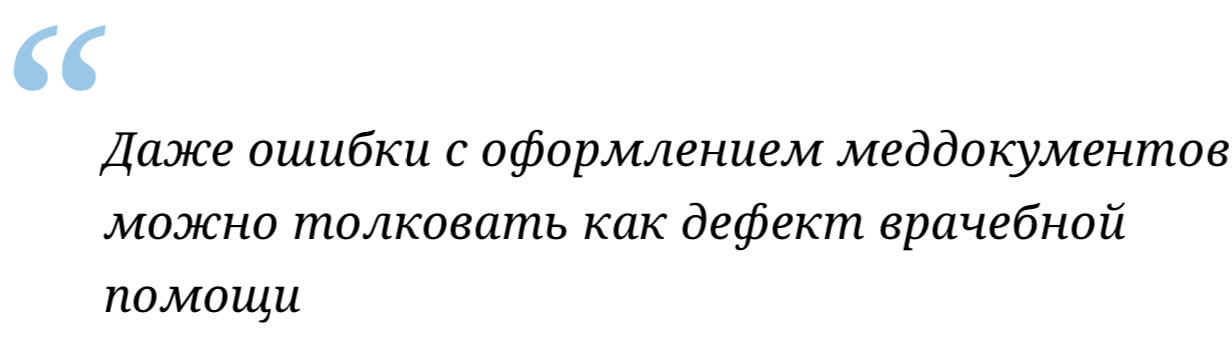 ВС РФ неоднократно подчеркивал, что нарушение порядка и стандарта оказания медицинской помощи, проведения диагностики, лечения, выполнения послеоперационных процедур противоречит требованиям к качеству медицинской услуги и правам в сфере охраны здоровья. Даже ошибки с оформлением меддокументов умершей можно истолковать как дефект оказания врачебной помощи или нарушение прав в сфере охраны здоровья. Это может стать самостоятельным основанием для компенсации морального вреда.