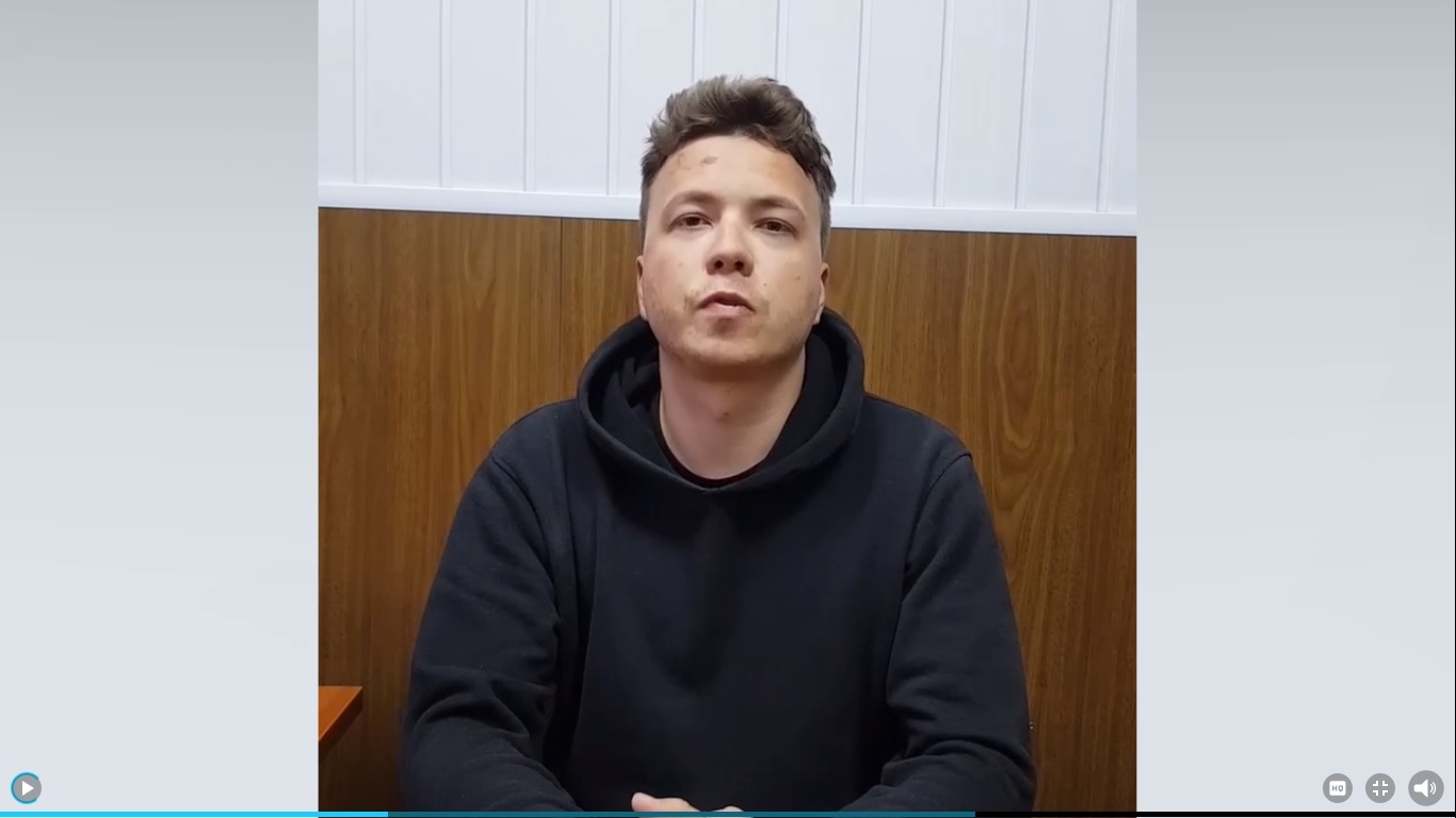 Протасевич в коротком видео сообщает, что у него всё хорошо и что он даёт признательные показания. Скриншот с сайта газеты "Московский комсомолец"