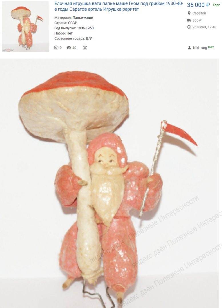 Не отстает в цене и гном с косой. Видимо талисман грибников. 35000 рублей.