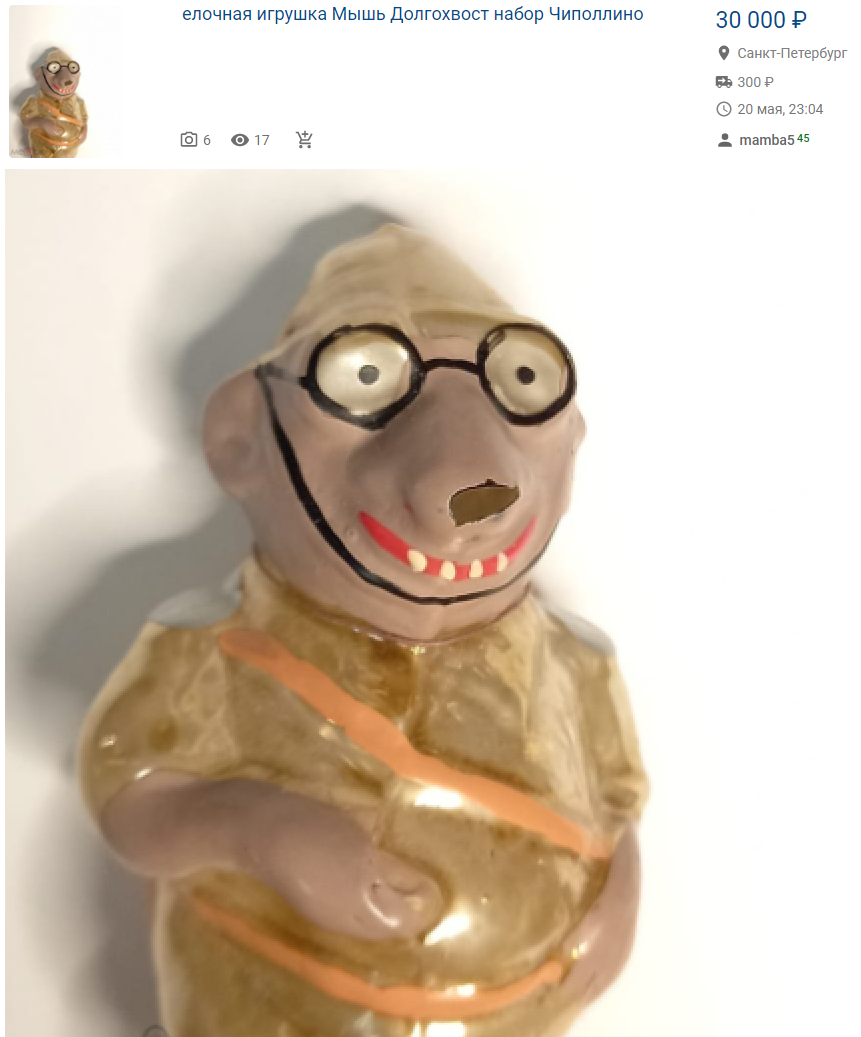 Мышь из набора "Чиполино" оценили в 30000 рублей