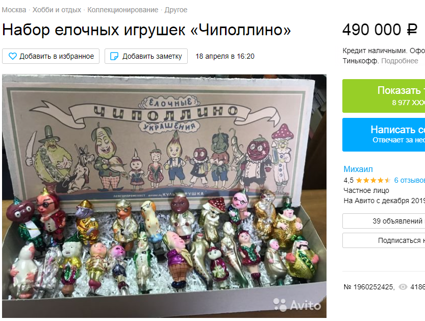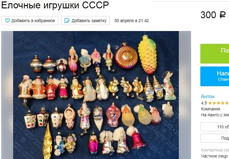 Объявления о продаже ёлочных игрушек СССР мне попадались и раньше. Я даже иногда внимательно рассматривал представленный ассортимент, в надежде разыскать знакомые игрушки детства. Как правило все эти объявления были из серии "рубль за ведро"