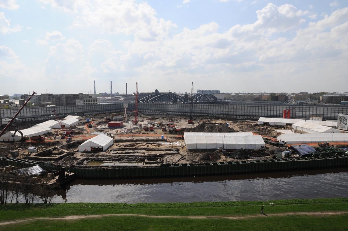 Место раскопок на Охтинском мысу по состоянию на 2010 год. Фото взято с сайта Градозащитного форума