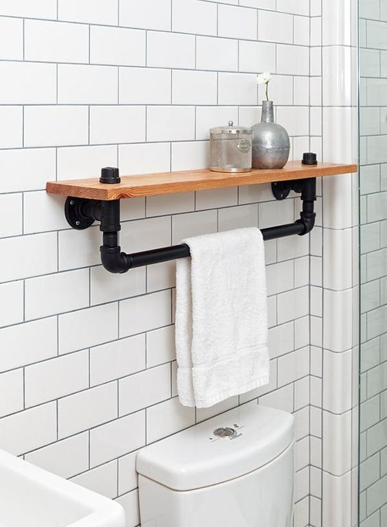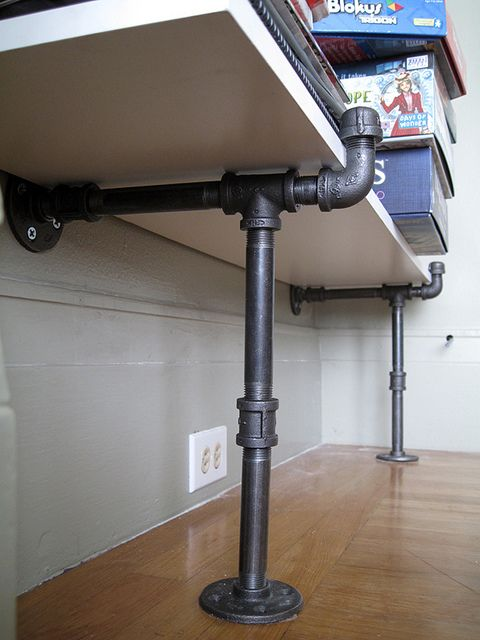 Оригинальный результат при этом гарантирован, ведь из них можно собирать самые разнообразные конструкции, начнем с полочек - трубы в сочетанием с грубыми деревянными досками дают стильный лофт.