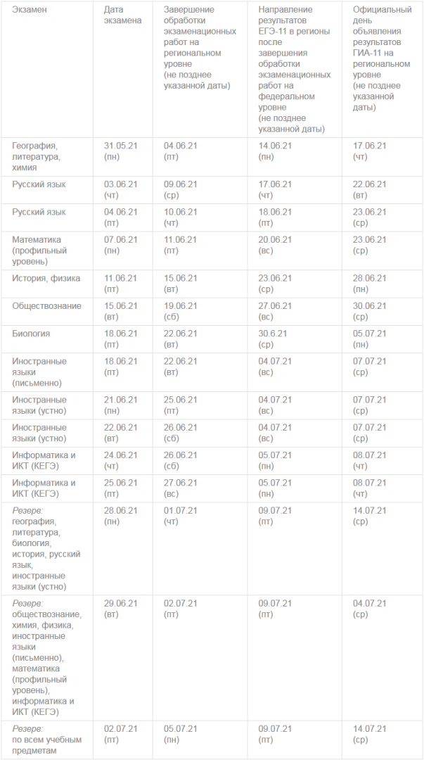 Результаты экзаменов ЕГЭ-2021: график обработки и публикации результатов ЕГЭ 2021 по всем предметам