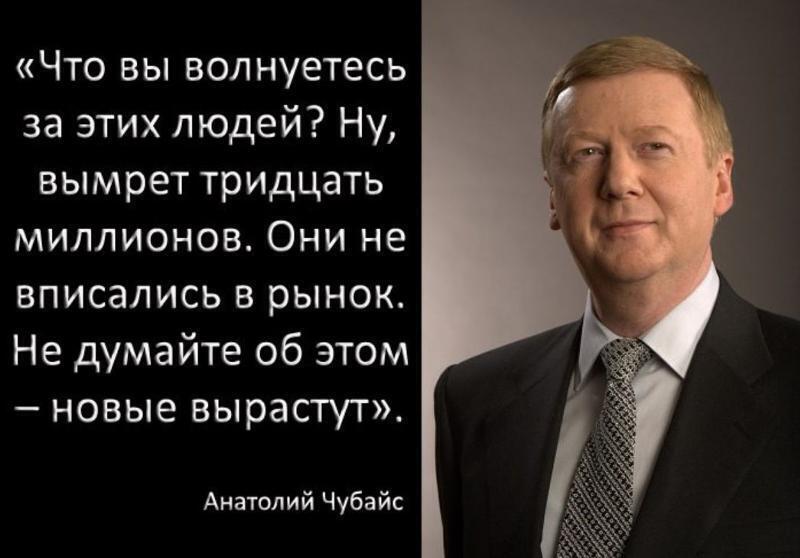 Чубайс никогда не скрывал своего презрения к людям, ни планов по сокращению населения.
