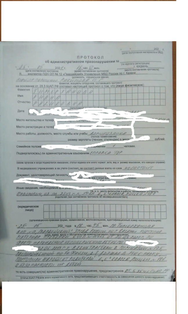 Инспектор ПДН ОП №12 «Гвардейский» МВД Татарстана составляет по его факту протокол об административном правонарушении, предусмотренного статьей 5.35 КОАП РФ ч.1, то есть неисполнение родителем своих обязанностей в отношении ребенка, которое конкретно выразилось, по мнению инспектора в том, что по факту нахождения сына Тимерхановой Л.Р. в гимназии 175 поступили жалобы от родителей 1 го Е класса об угрозе безопасности их детей. И данный протокол направлен в комиссию по делам о несовершеннолетних для рассмотрения.