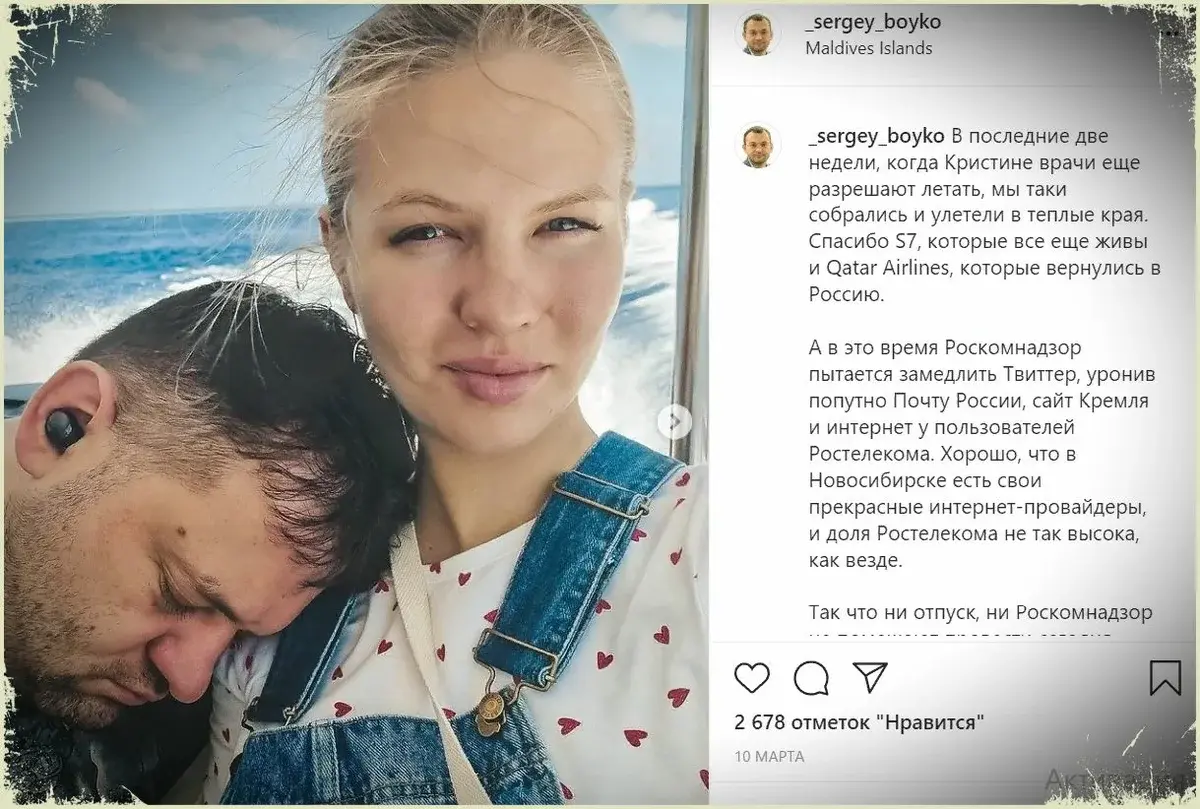 Став депутатом, Сергей понял, что он поймал птицу счастья за хвост, и уже в марте этого года (карантин? Нет не слышали) летит со своей девушкой на Мальдивы, аж на две недели!