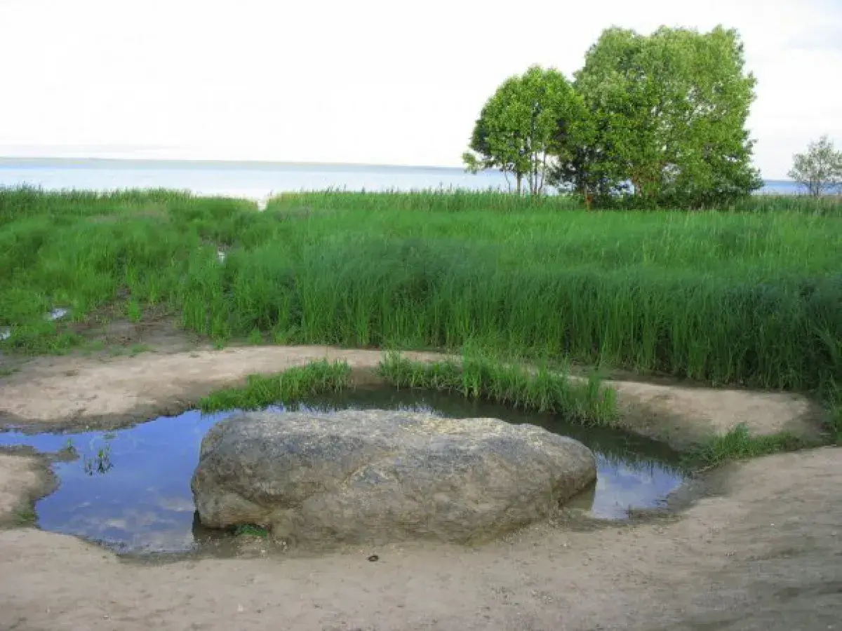 На берегу Плещеева озера расположен легендарный Синий камень — часть древнего языческого святилища. Это подлинный ритуальный объект, сохранившийся до наших дней со времен языческой Руси. После дождя цвет камня меняется от серого к синему — благодаря этому явлению камень получил свое название.