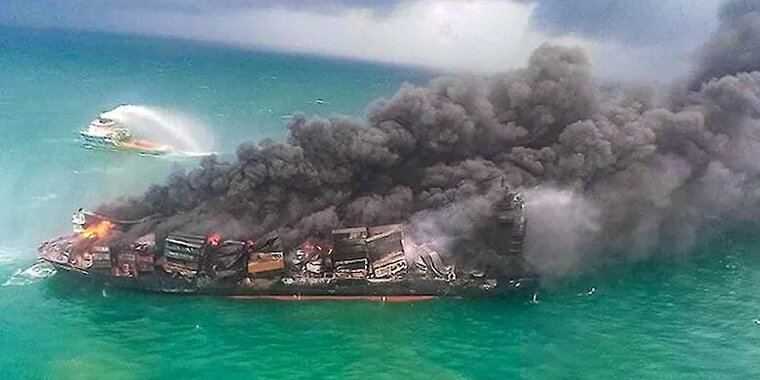 Горящее судно у берегов Шри-Ланки спровоцировало экологическую катастрофу