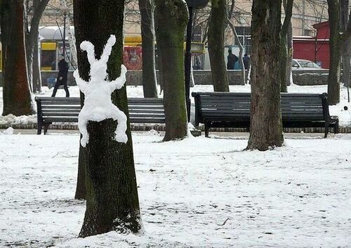 Зимой из снега можно лепить различные веселые фигурки, вот один из таких примеров