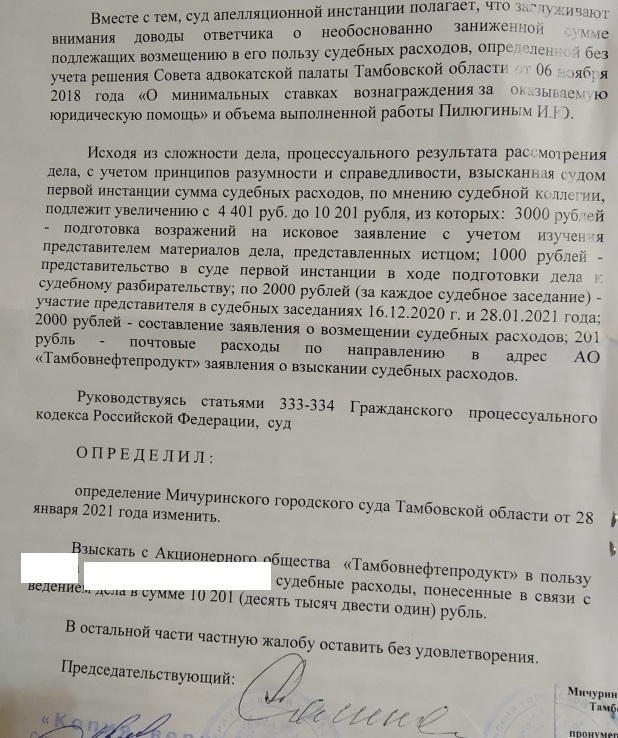 Вот так закончилось дело для АО «Тамбовнефтепродукт», возжелавшего взыскать трёшку с моего доверителя.