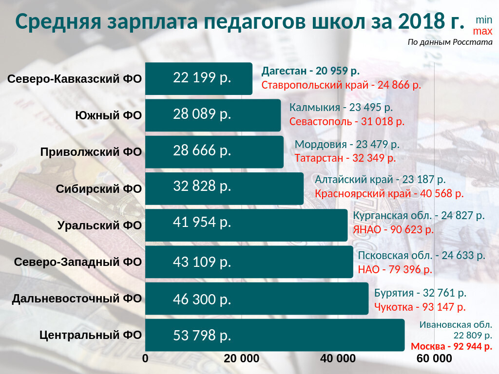 Для сравнения - инфографика заработной платы учителей по федеральным округам в 2018 году:
