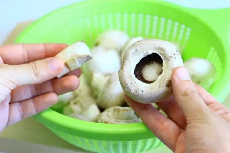 А вот пластинки грибов удалять не нужно. Многие их счищают, что совершенно напрасно, ведь именно пластинки шампиньонов придают всевозможным блюдам из этих грибов выраженный аромат и насыщенный, пикантный грибной вкус.