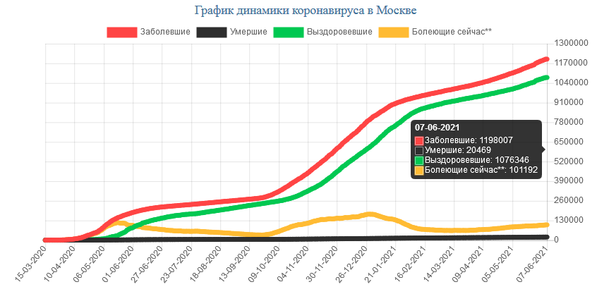 На сегодня, 7.06.2021, в Москве всего зарегистрировано: