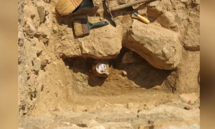 Гвоздь, найденный вместе с куриными костями и кувшином