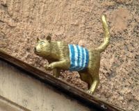 Вообще история этого события началась еще в 1999 году, когда петербургский предприниматель Илья Ботка подарил городу две скульптуры — кота Елисея и кошку Василису. По предложению историка Сергея Лебедева они «поселились» на карнизах Малой Садовой улицы. Третья кошка, созданная скульптором Владимиром Петровичевым, долгое время «жила» сначала у Ботки, а затем у Лебедева — пока в 2005 году историк не вручил её «митькам». Спустя несколько дней художники установили металлическую фигурку на карнизе дома по улице Правды. Кстати, когда «митьки» переехали на улицу Марата, туда же перебралась и кошка.