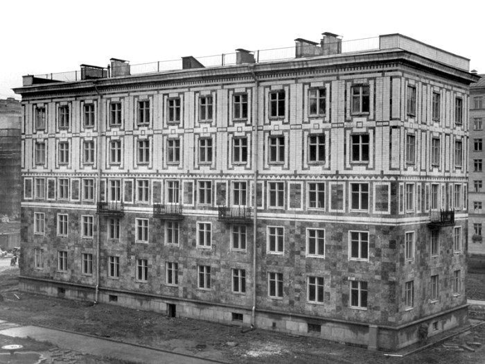 Дом 10 по улице Полярников в Ленинграде сразу после строительства
