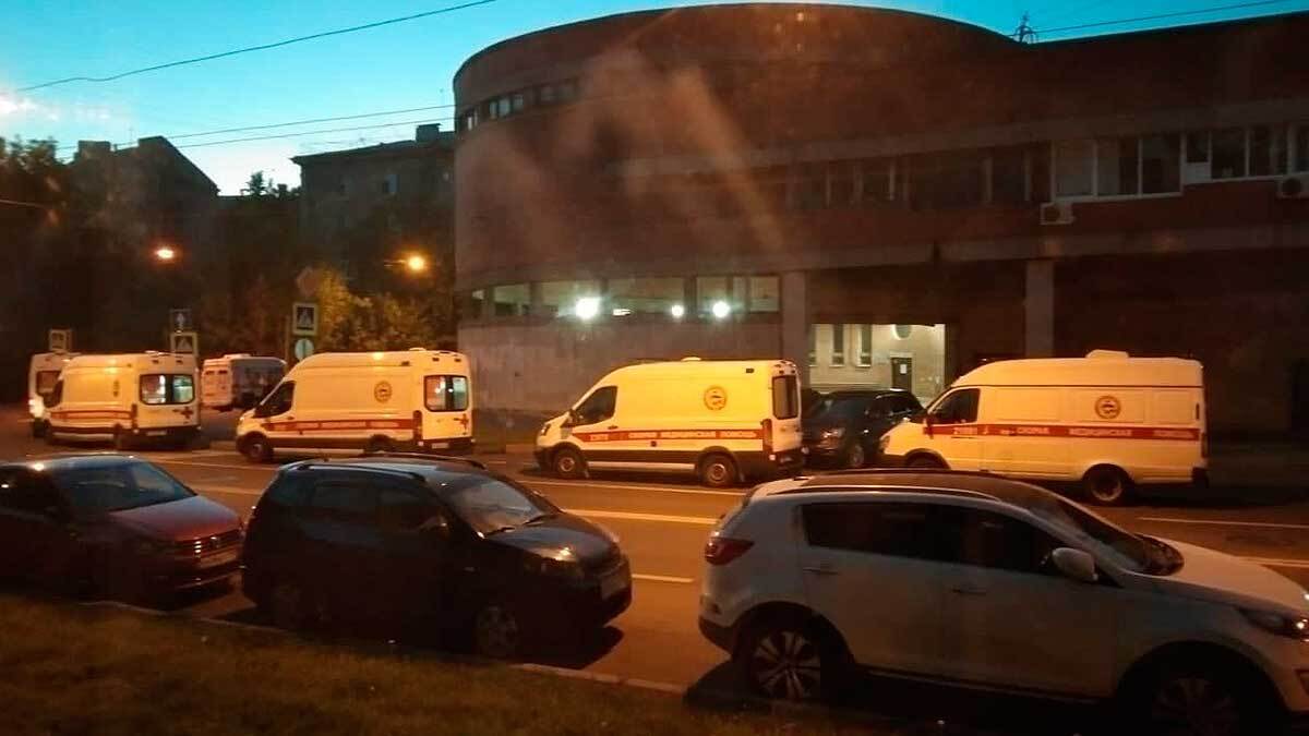 Жители Петербурга делятся в соцсетях фото и видео с длинными очередями машин скорой помощи у Покровской больницы города. Теперь медицинские кареты стоят даже ночью.