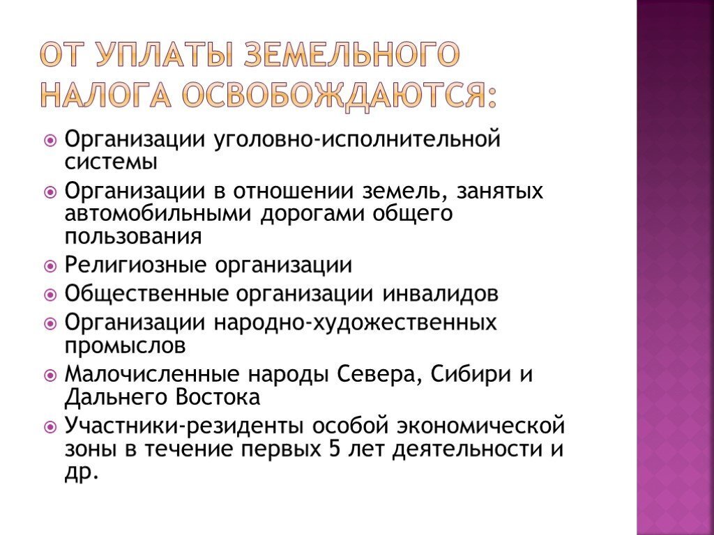 земельного налога на земельные участки со зданиями религиозного и благотворительного назначения (Налоговый кодекс РФ ст. 395 п. 4);
