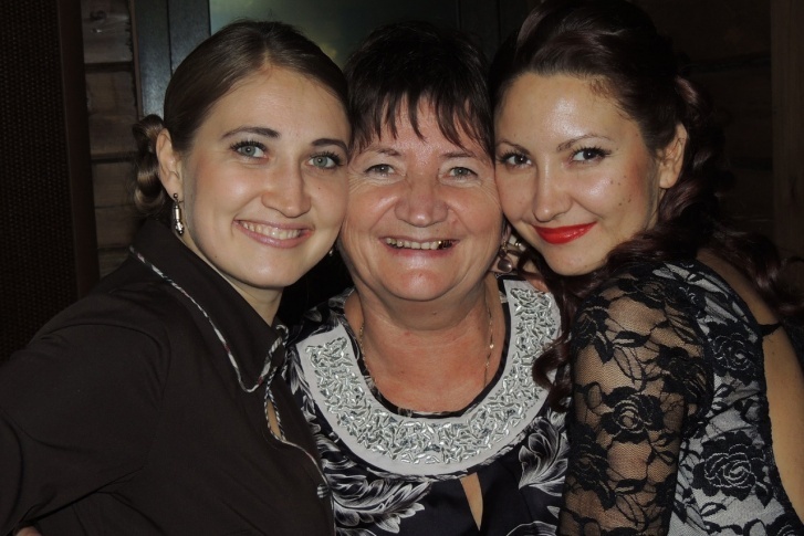 Зинаида Никандровна в центре, с нею рядом — дочки.