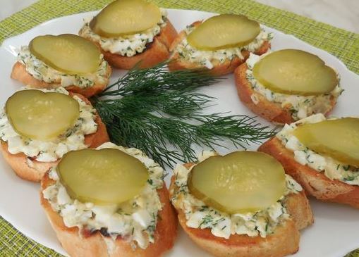 Закусочные бутерброды с яйцами и солёными огурцами.
