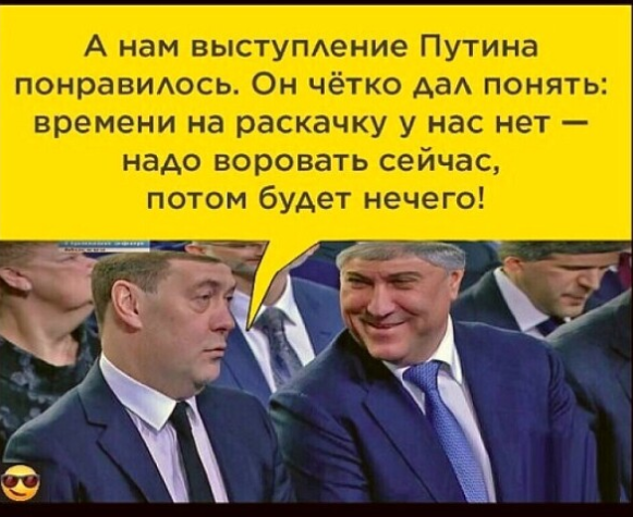 За покерным столом, отхлебнув виски и затянувшись сигарой, один из крёстных отцов грустно произнёс -- "Надо же (!) какая "пруха " у этих "везунчиков"... Сидят они на трёх сукАх (власти) и ноги свесили... Единственное, что не продАли Западу -- логотип "ЕР" -- себе оставили... и вот... -- только успевают кассировать... народ всё добровольно последнее несёт, себе оставив лишь портки..."