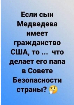 Дмитрий Медведев: «Единая Россия» никогда не разделит печальную судьбу КПСС!»- И он прав у этой партии судьба будет значительно печальнее, чем у КПСС надеюсь в недалёком будущем, она на плаву только из за административного ресурса и умело нагло выборных подтасовок.
